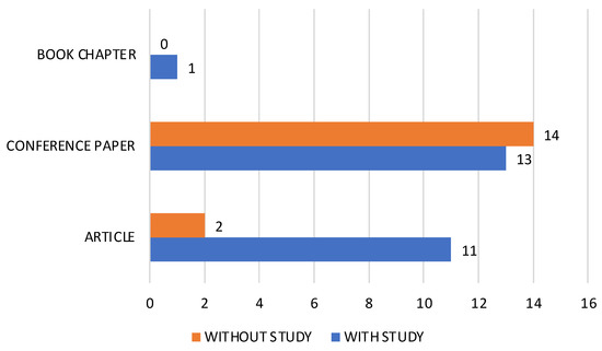 - In what type of document have these works been published—that is, how many have been published in the form of articles, conference papers, reviews, or book chapters, and how many contain an empirical study (empirical data collection and analysis thereof)?