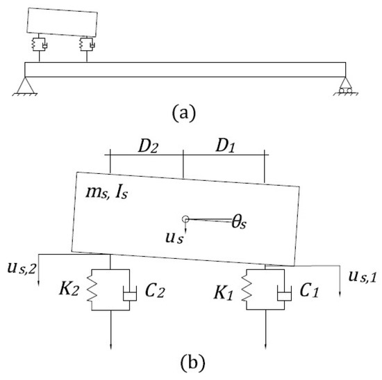 (a) 2-degree-of-freedom half-car and beam model; (b) 2-degree-of-freedom half-car model.