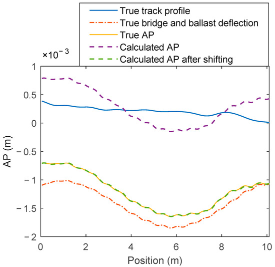 Calculated AP, calculated AP after shifting, and true AP (off-bridge) for Profile 1, State 7, and Run No. 1.