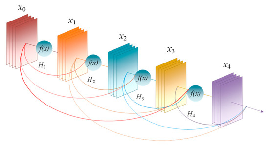 In order to solve the problems of overfitting and gradient disappearance caused by the complex network structure, DenseNet, a convolutional neural network proposed by Gao et al. [29], proposed a structure of dense connection. The core technology of the DenseNet network is to solve the overfitting problem through the fusion of deep and shallow features, and use cross-connections to alleviate the gradient disappearance caused by too deep network layers.