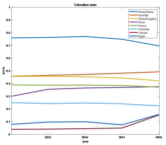 By adopting our evaluation model, we compare China’s performance with policy in 2038 with that of several developed countries without policy in 2018, and the results are shown in Figure 11. From the figure, we see that in 2038, China is expected to surpass the levels of higher education in the UK and France and reach the level of Australia in 2018. Certainly there is still a long way to go to catch up with the level of American higher education in 2018. However, in comparison with the situation without policy, the improvement is evident.