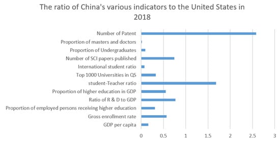 - Social output and scientific output: These kinds of indicators mainly investigate the labor market output of higher education to the whole working age population, as well as the achievements of higher education in scientific research. These are: (1) the unemployment rate of students in higher education at all levels; (2) the proportion of employees receiving higher education; (3) the number of papers published; and (4) the number of patents published.