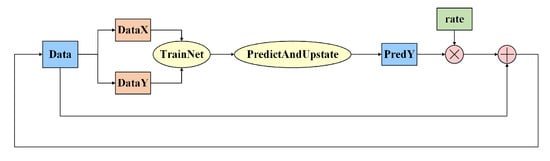 - Preprocessing: For variables to be predicted in the dataset, we calculate their periodic values and rank them from small to large. Next, we obtain the periodic values of the first N smallest variables to be predicted. Then, we calculate the correlation coefficients between the variables and those to be predicted and arrange the variables in order from large to small according to their corresponding correlation coefficients. Finally, we extract the variables with sums of correlation coefficients being greater than a coefficient threshold to form a training set.