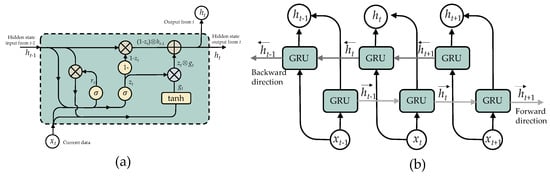 Structure of Bidirectional GRU (BiGRU): (a) GRU cell and (b) unroll BiGRU.