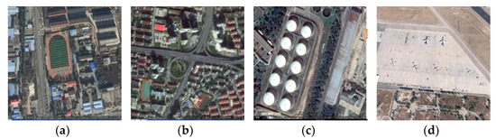 Images in the RSOD datasets. (a) Playground; (b) overpass; (c) oil tank; and (d) aircraft.