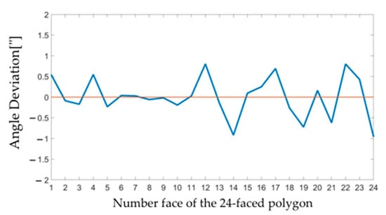 The average of Equation (6) yields the pitch angle deviation of the first face of the 24-faced polygon. With the values listed in the third row, the pitch angle deviation of the second face can be calculated. The pitch angle deviations of all faces can be calculated using Table 2.