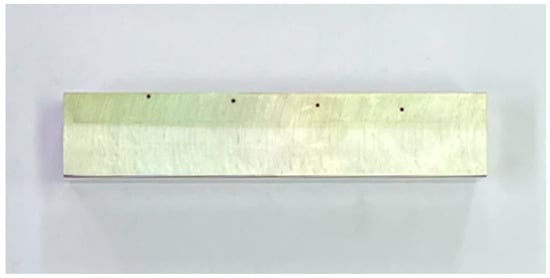 In this study, to improve the problem caused by the dead zone in the ultrasonic inspection of work rolls using deep learning, a standard specimen modeling the subsurface defects in the work roll was fabricated. The standard specimen was made of AISI 304L, a material similar to that of the work roll, with defects of size 0.4 mm; the defects are of the side drilled hole (SDH) type and are located at depths 1 mm, 2 mm, 3 mm, and 4 mm below the surface. The spacing between the defects is set as 20 mm so as not to affect the ultrasonic signals. Figure 3 shows the fabricated standard specimen.
