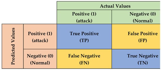 - The confusion matrix that is used to report the number of correctly predicted samples (represented in two factors TP and TN) and the number of incorrectly predicted samples (represented as FP and FN). The predicted values can be described as positive and negative values, whereas the actual values can be described as true and false values. The two-class confusion matrix is shown in Figure 5.