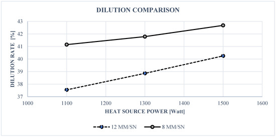 The heat source simulation model for the dilution rate is established, and the results have been gathered from these approaches within Table 2. The rationality of the model is compared by academic studies. Comparison study shows a parallel inclination between measured results physically and estimated dilution rates using simulation shown in Figure 7 [29].