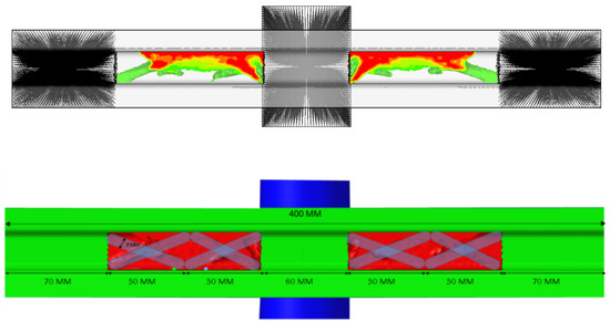 After the heat source model creation phase, in order to initialize a semi cross hybrid DED part, design volume has been created for topology optimization as shown in Figure 8. The topology optimization model has been evaluated under three point bending conditions.