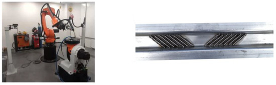 The DED machine concept used for manufacturing is based on a six-axis robot assembled on a table with a working range using a 2500 mm × 1000 mm plane. A semi cross part with semi cross left pattern has been selected from Table 3 and produced as shown in Figure 10.