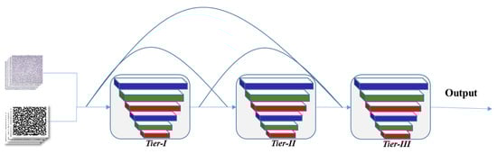 Suppose that Vo got a value greater than the predefined Ť value of the nth tier. The output feature map (Ôi) is given as an input to the n + 1 Tier. The Ôi of nth tier includes morphological features and pixel-level and sematic information extracted by the nth tier model. On the other hand, if the nth tier got a Vo value less than predefined Ť, then the Ôi of the nth tier model is given as an input again to the same tier for more optimal features selection. Mathematically, the whole training and validation process is defined as follows: