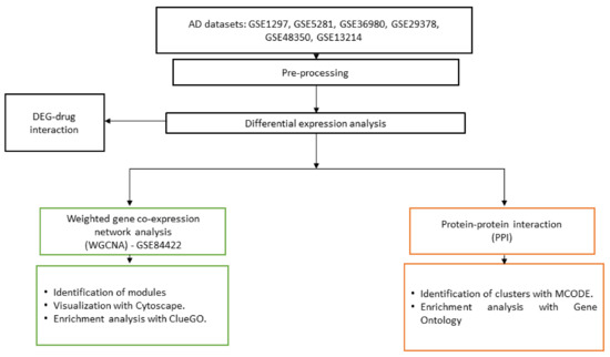 In recent years, bioinformatics analysis has been widely applied to molecular biology experiments revealing key pathways and pharmacological targets of complex diseases [11]. Therefore, the analysis of multiple high-throughput datasets of AD patients may be an optimal strategy [11,12,13].