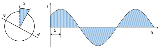 The strain curve has a sine wave since the strain depends on the bending moment and the angle position where the strain is measured. The strain ε, as measured by strain gauges at any point, can be expressed as Equation (1) [35].