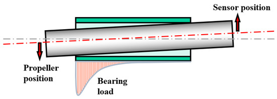 If it is assumed that the propeller shaft is a rigid beam without deformation, the movement of the propeller’s position (the eccentric thrust force generating position) can be deductively inferred to lie in the opposite direction to the sensor position.