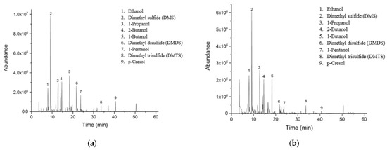 GC-MS results for as-received cattle manure (a) and manure with biochar treatment (b). Reprinted with permission from Kaikiti et al. [97]. 2021, Agapios Agapiou.