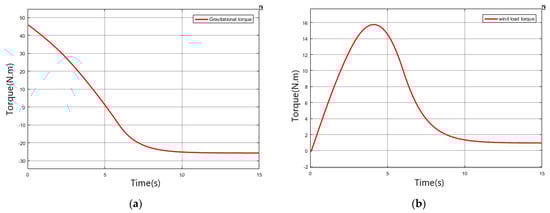 The mathematical model for deriving the load torque is simulated in Simulink and the results are shown in Figure 4. Figure 4a is the part of the gravitational torque. It can be seen from the figure that the torque first decreases with time during the erection process, and then the reverse increases. Figure 4b is the wind load torque part, it can be seen from the figure that the torque increases first and then decreases with time during the erection process. Take the sum of the two parts of the torque as the load torque of the system.