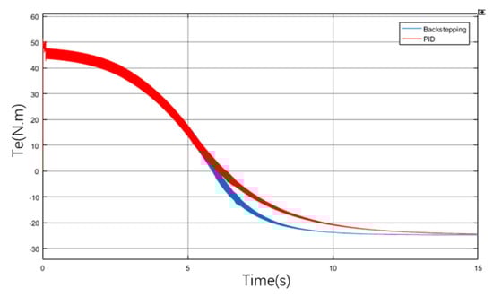 Comparison of electromagnetic torque curve between traditional PID and adaptive inversion controller.