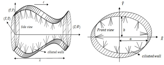 - McCash, L.B.; Nadeem, S.; Akhtar, S.; Saleem, A.; Saleem, S.; Issakhov, A. Novel idea about the peristaltic flow of heated Newtonian fluid in elliptic duct having ciliated walls. Alex. Eng. J. 2022, 61, 2697–2707. [Google Scholar] [CrossRef]