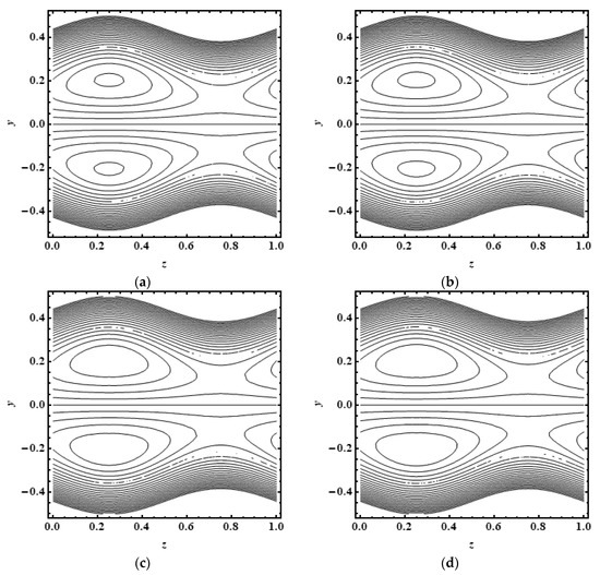 - Nadeem, S.; Akbar, N.S. Influence of heat transfer on a peristaltic flow of Johnson Segalman fluid in a non uniform tube. Int. Commun. Heat Mass Transf. 2009, 36, 1050–1059. [Google Scholar] [CrossRef]