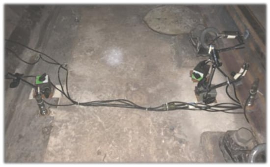 Vibrations of the track bed are measured by an acceleration sensor. Two acceleration sensors are used for each measurement segment, one is used to measure the vertical acceleration of the rail (Figure 5), and the other is used to measure the vertical acceleration of the track bed (Figure 6).