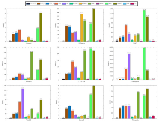 Running time of different methods on nine multi-view data sets.