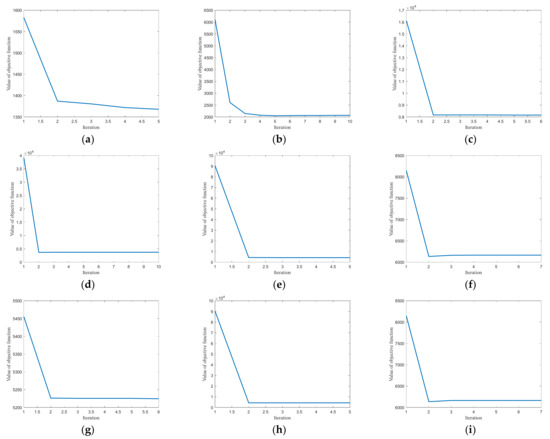 The objective function of LGOMSC has multiple variables and constraints. We have developed an effective iterative optimization algorithm to solve the proposed method. We conduct the convergence experiment in Figure 5, which provides the convergence curves of LGOMSC on nine multi-view data sets. The x-axis displays the number of iterations, and the y-axis displays the corresponding objective function value. From these results, one can see that the proposed method is well convergent and converges quickly. Within 10 iterations, the objective function value can converge to a stable value.