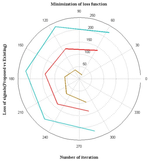 Table 4, it can be perceived that, if the errors are present at one side of the plot, it will be propagated through all distinct directions. The simulation plot is represented with a number of iterations, and for each variation, the total loss in the system is calculated. The major reason for plotting the number of iterations is that the expected output will be compared with achieved fuzzy set outputs, and if any variations are observed, then the error for that particular period will be indicated. Furthermore, at high state iterations, the proposed method achieved zero loss conditions, as compared to the existing method [