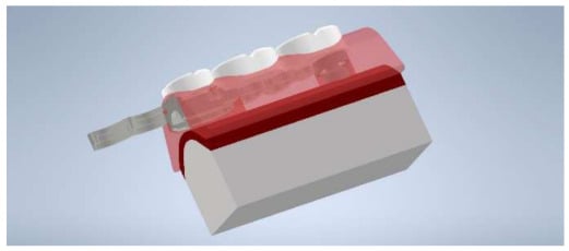 Finite element analysis was used in order to study the stress distribution in these two unilateral denture designs. The 3D models were created using Autodesk Inventor 2022 software (Figure 1, Figure 2, Figure 3 and Figure 4); their characteristics are presented in Table 1. The geometrical form of the second premolar was cylindrical, while that of the two molars was elliptic cylindrical; their dimensions were considered equal. In addition, all the cusps were considered to be equally dimensioned and in the same occlusal plane.