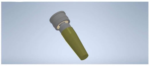 The 3D Model of the implant and ball attachment, with matrix housing.