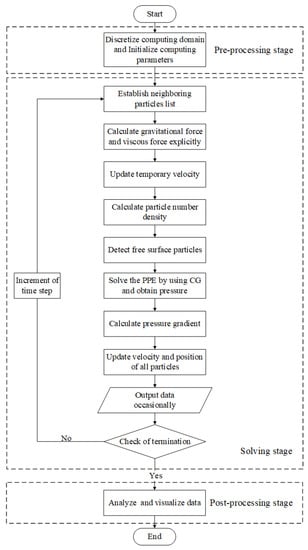 The flow chart of MPS numerical simulation is illustrated in Figure 2.