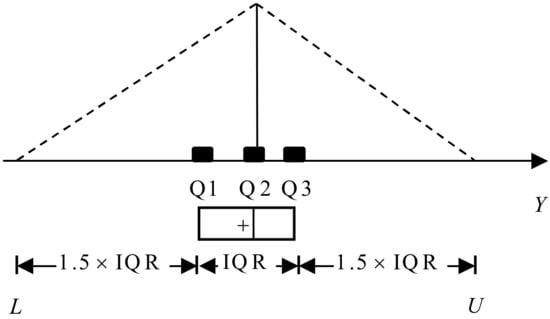 As in Section 2.1, boxplots contains three sections and each section contains its upper bound (Q1) and lower bound (Q3). The appropriate value bounds [L, U] defined in the boxplots and called the inner fences, where L is the lower fence, defined as lower than Q1 and U is the upper fence defined as higher than Q3. Observations distributed outside the bounds can be recognized as outliers, while those distributed within the bounds [L, U] are recognized as reasonable observations. However, it is easy to misclassify a reasonable observation as an outlier when sample sizes are small. The estimated bounds are thus modified as