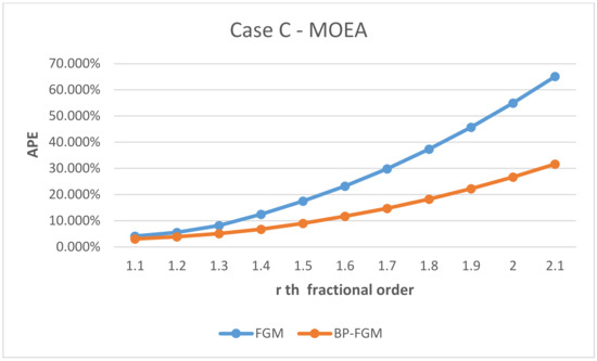 Representing the absolute percentage error for Case C by using the FGM and BP-FGM model.