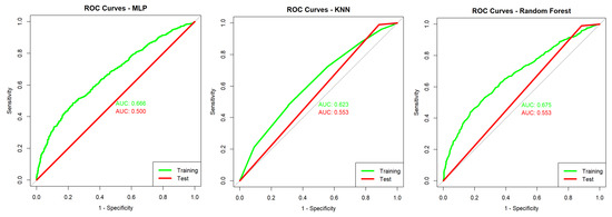 One study [38], which resembled the present research work in its application, analyzed AI algorithms for positive and negative diagnosis of COVID-19. In this work, the gradient boost decision tree (GBDT), random forest, logistic regression and decision tree algorithms were used, giving an average AUC (“area under the ROC curve”—away to summarize the information represented in the ROC curve) result of 83%. In addition to showing that GBDT has the best results, the authors analyzed patients segmented by age, race and sex. The main contribution was a methodology to make this type of project operational in hospitals.