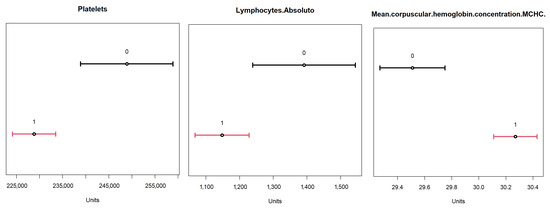 In [36], blood test data for the positive and negative diagnosis of COVID-19 were used. The work used artificial neural networks, random forest, linear regression and lasso elastic-net regularized generalized linear (known as glmnet). The experiments were conducted with blood tests of hospitalized and symptomatic patients. As expected, the correct recognition results were higher in inpatient cases (on average 89%) than in suspected patient cases (on average 75%). As the algorithms used in the work are based on supervised learning, which are sensitive to class imbalance, and in this case, there were more objects from COVID-19 patients, the authors performed class balancing, and therefore, the results obtained already account for this type of pre-processing. In an attempt to explain the results, the authors made linear combinations of blood test factors in order to discover those most representative for diagnosis, concluding that leukocytes, monocytes, eosinophils and platelets were the most significant factors. Their diagnostic accuracy was 79%.