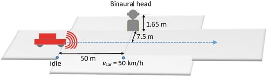 - Hoffmann, A.; Kropp, W. Auralization of simulated tyre noise: Psychoacoustic validation of a combined model. Appl. Acoust. 2019, 145, 220–227. [Google Scholar] [CrossRef]