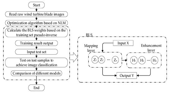 The flowchart of the proposed wind turbine blade damage identification model based on the CBNLM-BLS is shown in Figure 5 below.