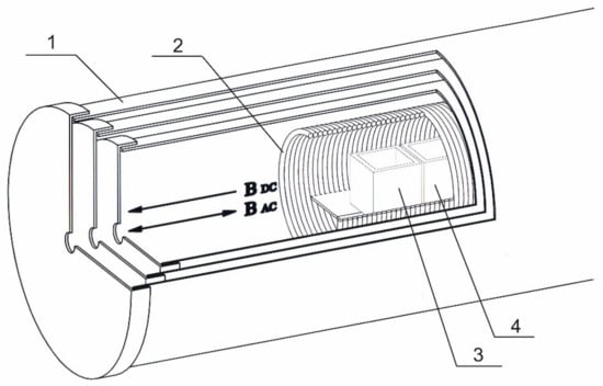Controlled magnetic field generation device. 1—Permalloy shields; 2—Solenoid (magnetic copper wire coil); 3—Cuvette with an acceptor sample (sample of IFNγ or water); 4—Cuvette with a donor sample (HD Abs to IFNγ or HD PMA); BAC—Magnetic induction produced by alternating current; BDC—Magnetic induction produced by direct current.