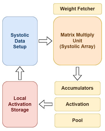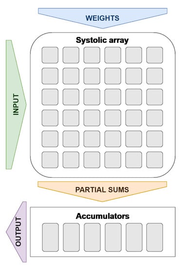 31]. Since most of the computations in NN are matrices multiplication, modern hardware accelerators efficiently use computing units based on systolic arrays. All other calculations, such as activation or subsampling, are performed by separate specialized units.