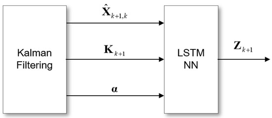Therefore, the inputs of the Kalman filter correction model were the above three factors, the output was the actual state of the moving target , and the inputs and outputs formed a mapping set. The LSTM–NN model could be described as: