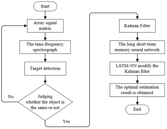 Firstly, the target of the time series was compared using the target detection model to judge whether it was the same target. Secondly, the Kalman filtering method was combined with the LSTM network to obtain the optimal estimation result. Finally, we drew the tracking trajectory of the moving target. Figure 3 shows the simulation flowchart.