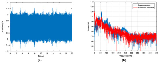 The time domain diagram and frequency domain diagram of the receiving data: (a) the time domain diagram of the receiving data; (b) the frequency domain diagram of the receiving data.
