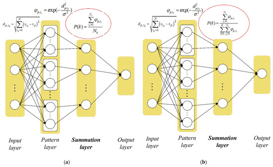 Probabilistic Neural Network: (a) classical version; (b) a modified version.