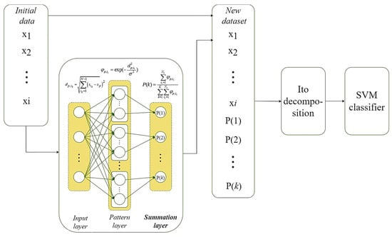 The improvement consists of additional modeling of all extended attributes of the dataset due to the PNN’s outputs based on the Ito decomposition. According to Cover’s theorem, such nonlinear modeling of relationships between attributes of a given dataset provides an opportunity to increase the accuracy of linear classification. That is why the last step of the improved system is to use SVM with a linear kernel
