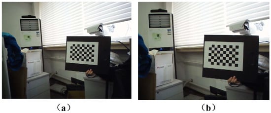 Checkerboard before and after distortion correction: (a) Before distortion correction; (b) After distortion correction.