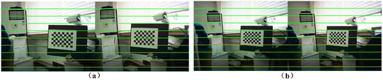 Checkerboard before and after stereo correction processing: (a) Before stereo correction; (b) After stereo correction.