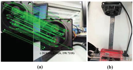 It should be noted that the test error of the binocular camera is large under overexposure (the last set of data), which is also a disadvantage of binocular visual ranging. However, as the charging facilities are generally placed indoors (such as underground parking spaces) or are equipped with a rain cover or a roof, which is necessary for the automatic charging system of the research, the situation of overexposure can be excluded. Figure 10a is the visual ranging result and Figure 10b is the scale ranging image.