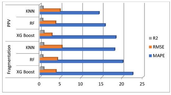 Two models—FIS, an artificial intelligence approach, and regression—were developed to forecast rock fragmentation using 415 blast design datasets in an Iranian mine and the research indicated that the FIS model performed well in predicting results [23]. Similarly, various methods showed that models can accurately forecast rock fragmentation based on input factors such as burden, spacing, and explosive quantity, among others [31]. Analogously, the Gene Expression Programming (GEP) model was used to predict Peak Particle Velocity (PPV) in Malaysian mines. A total of 102 datasets of blast design parameters such as burden-to-spacing ratio, stemming, hole-depth, a maximum charge per delay, and powder factor were fed into the trained model, and the GEP produced good R2 and Random Mean Square Error (RMSE) metrics and predicted well [32]. On 93 blasts of data, algorithms such as SVM, XG Boost, Random Forest, and K-NN were employed, and the results showed that XG Boost predicted the closest PPV value among all of them [33,34].