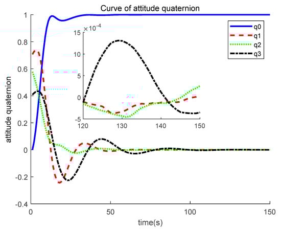 Curve of attitude quaternion under the controller proposed in this paper with actuator failure.