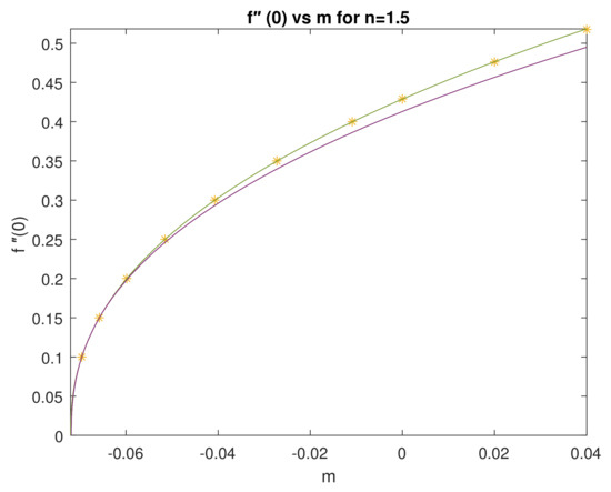 Solving the ODE for is crucial for us, as it corresponds to the cut-off values of m, as was observed in [6,26], and as is discussed in the introduction. The cut-off values of m are of much and particular interest in this fluid flow problem. We note that this is also a singularity of the original ODE (7).